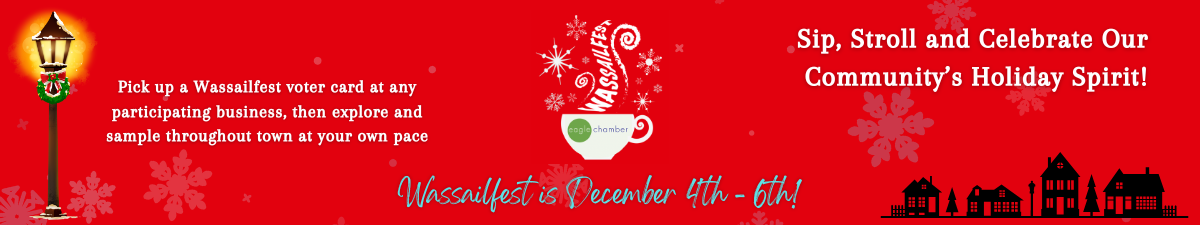 Since 2015, Wassailfest has warmed hearts and storefronts throughout Eagle. The word "wassail" (pronounced wassle) comes from Old English meaning "be you healthy". It began centuries ago as a cheerful ritual wishing good fortune for the coming year.